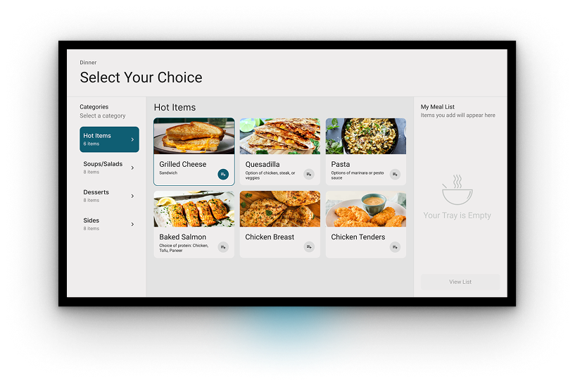 Hospital dining made simple.Patients can explore menus, personalize their meals, and order in seconds.