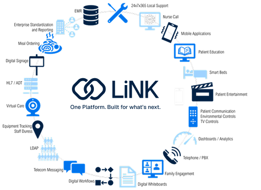 Every hospital is different. That’s why LiNK includes a dedicated team to build and support tailored integrations across your EHR, nurse call, RTLS, telehealth, and more.